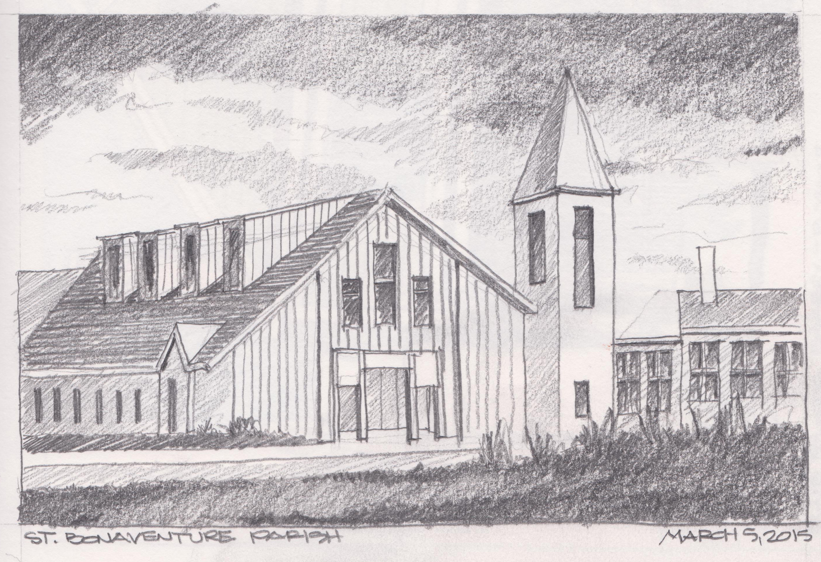 A quick graphite value study of Saint Bonaventure Parish in Manomet, MA.  Limited time tonight after cleaning up after another 8 inches of snow. Pentel .7mm mechanical pencil with Koh-I-Noor 4B in a Stillman and Birn Alpha Series Sketchbook.