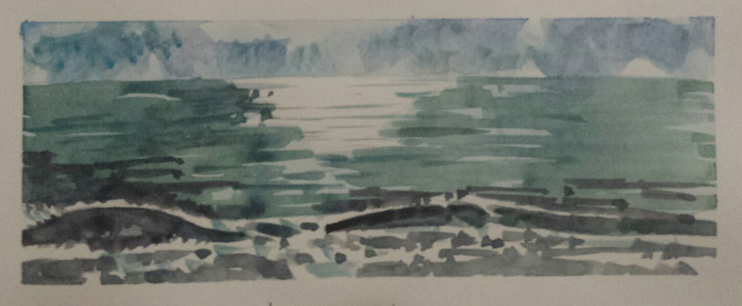 The sun was glistening off of the surf at the beach near 13th Avenue South in Naples. I am actually pretty satisfied with this drawing in my sketchbook fit capturing the waves and the sun reflection. Utrecht watercolors in my Stillman and Birn Travel Journal.