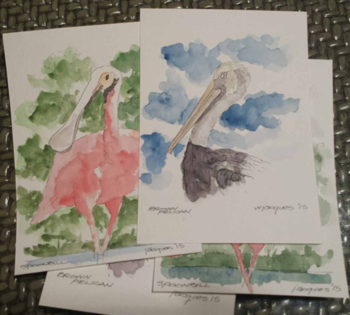 Watercolor Postcards May 8, 2015May 8, 2015waynejacques Watercolor Postcards of a Spoonbill and a Brown Pelican. Ink, Pelikan Watercolors on Canson Watercolor Cards. Share this: Click to share on X (Opens in new window) X Click to share on Facebook (Opens in new window) Facebook Like Loading... Related