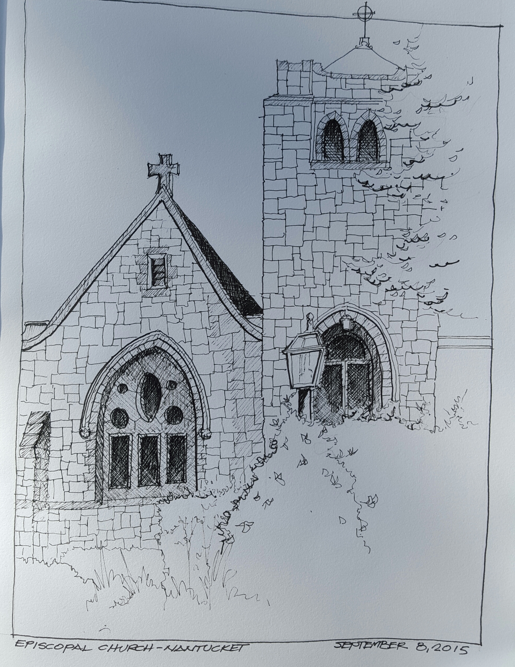 Nantucket Episcopal Church September 8, 2015September 9, 2015waynejacques A few days on vacation on Nantucket Island off the coast of Massachusetts. A quick sketch of the church across from our B & B. Faber-Castell Pitt pens in a Stillman and Birn sketchbook. 41.283470 -70.099451 Share this: Click to share on X (Opens in new window) X Click to share on Facebook (Opens in new window) Facebook Like Loading... Related