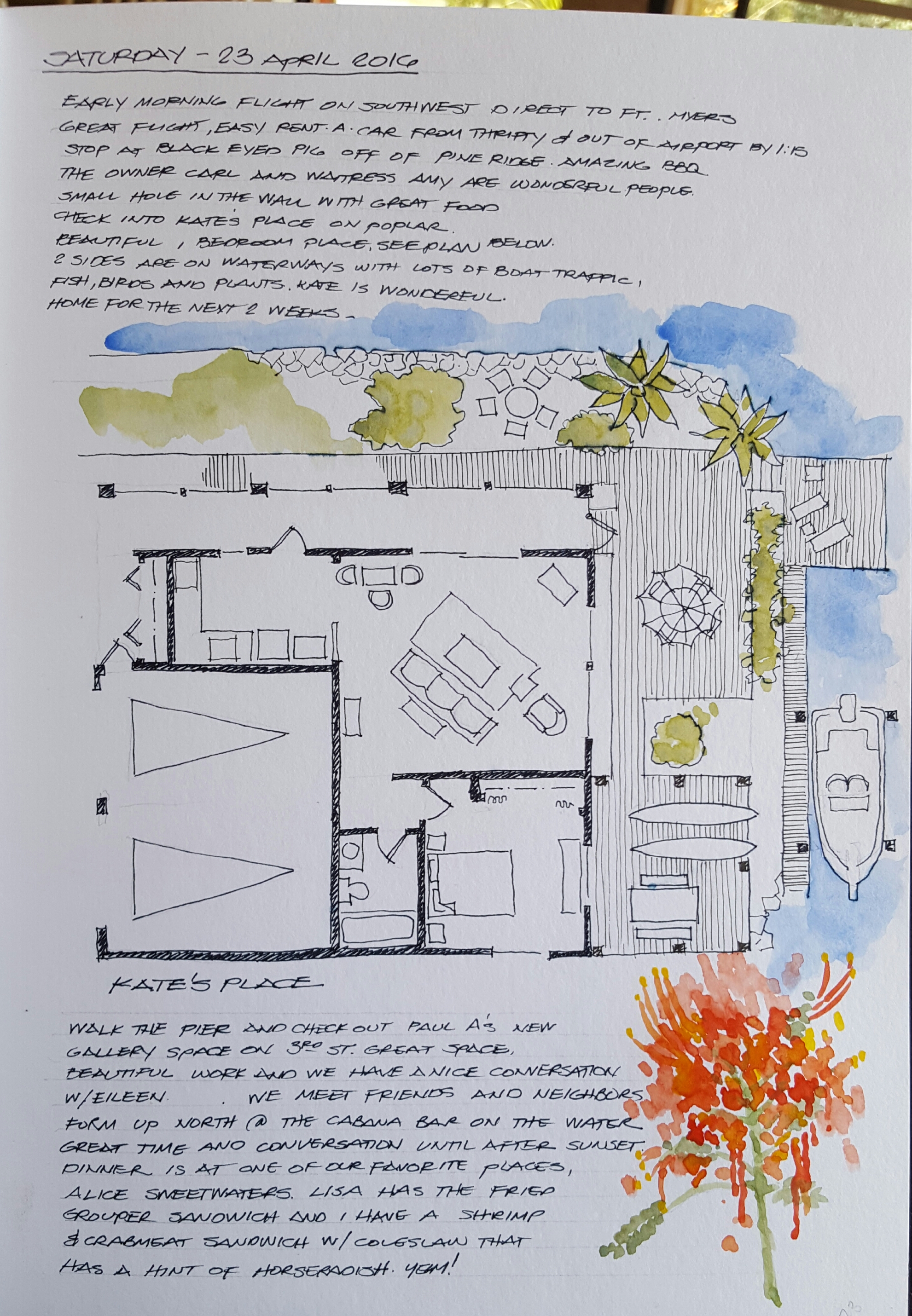 A quick sketch from a photo of a great restaurant, The Wicked Oyster in Wellfleet, Massachusetts on Cape Cod. Pilot Falcon fountain pen with Noodler’s ink and Holbein watercolors in a Stillman and Birn sketchbook.