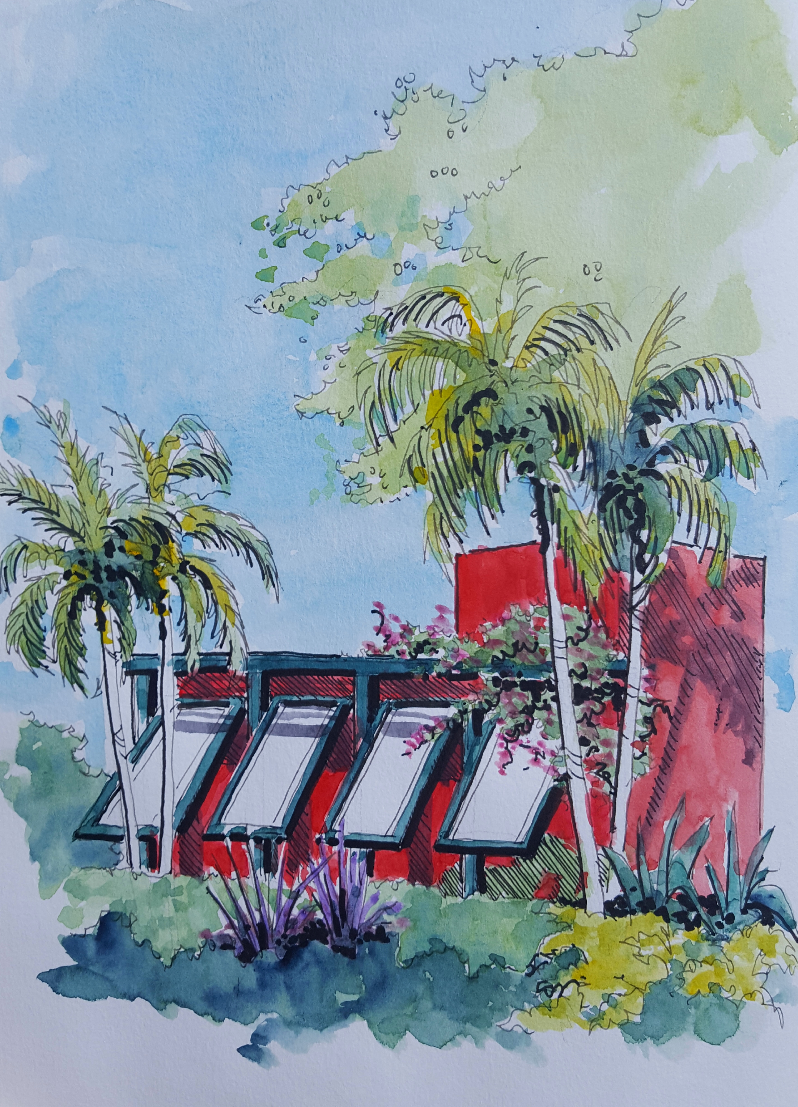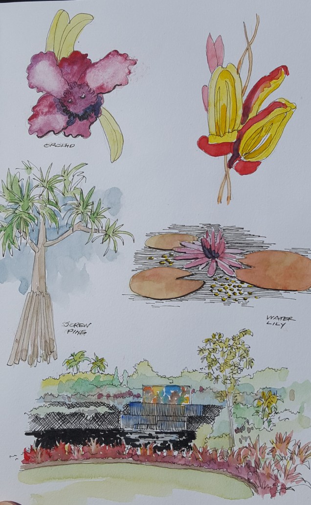 A wonderful day spent at the Naples Botanical Gardens. Such a beautiful, peaceful place that we love to visit. Pilot Falcon with Noodlers Bulletproof black ink and Holbein watercolors in a Stillman and Burn Beta sketchbook.