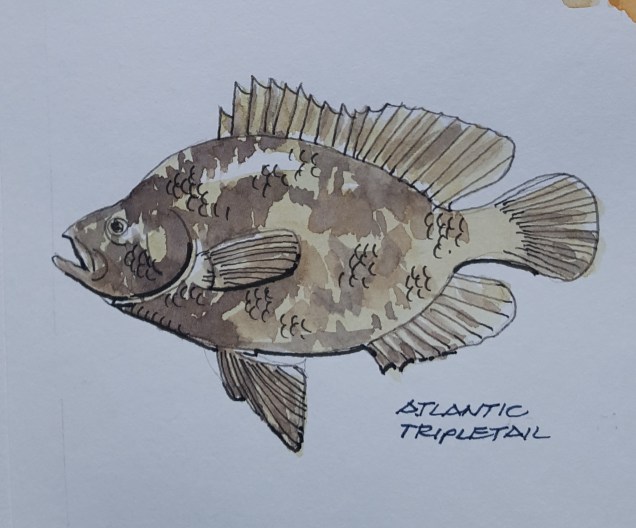 The local fish is amazing in Florida. This is a type of fish that we grilled the other night. Lamy Safari with Noodlers Bulletproof black ink and Holbein watercolors in a Stillman and Birn Sketchbook.