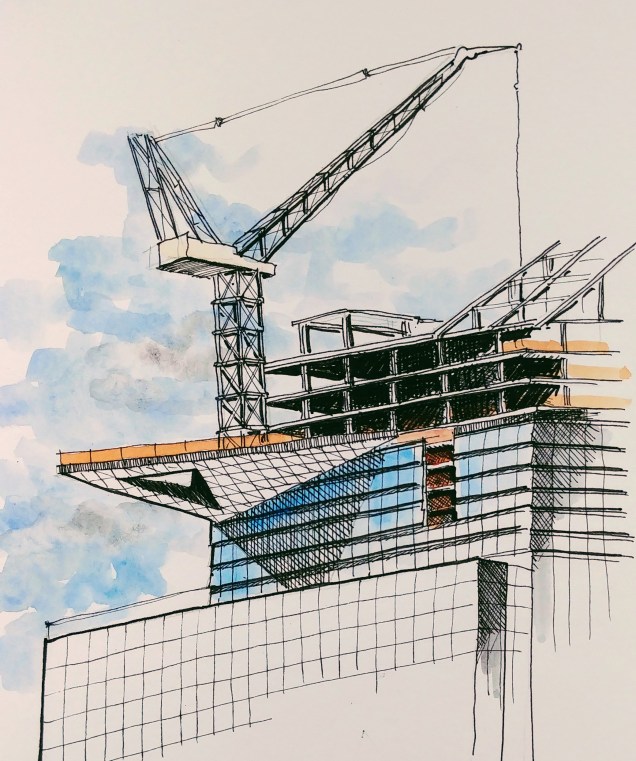 Another quick sketch during the Urban Sketching Workshop at the AIA. Ink and watercolor detail sketch of the rooftop sign at the Essex House on the edge of Central Park, New York City.