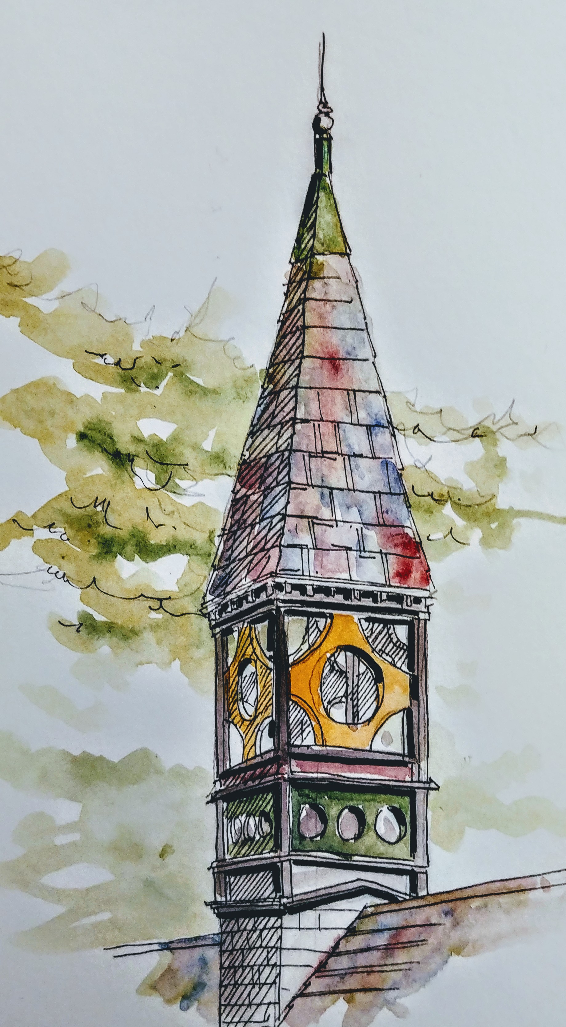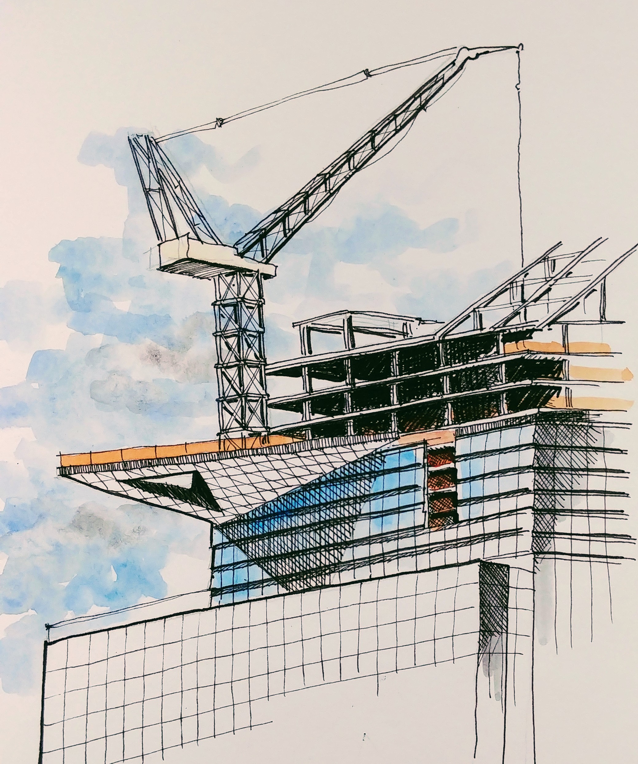 Faber-Castell Art pens and Holbein Watercolors in a Stillman and Burn Beta Sketchbook. Sketched in Studio