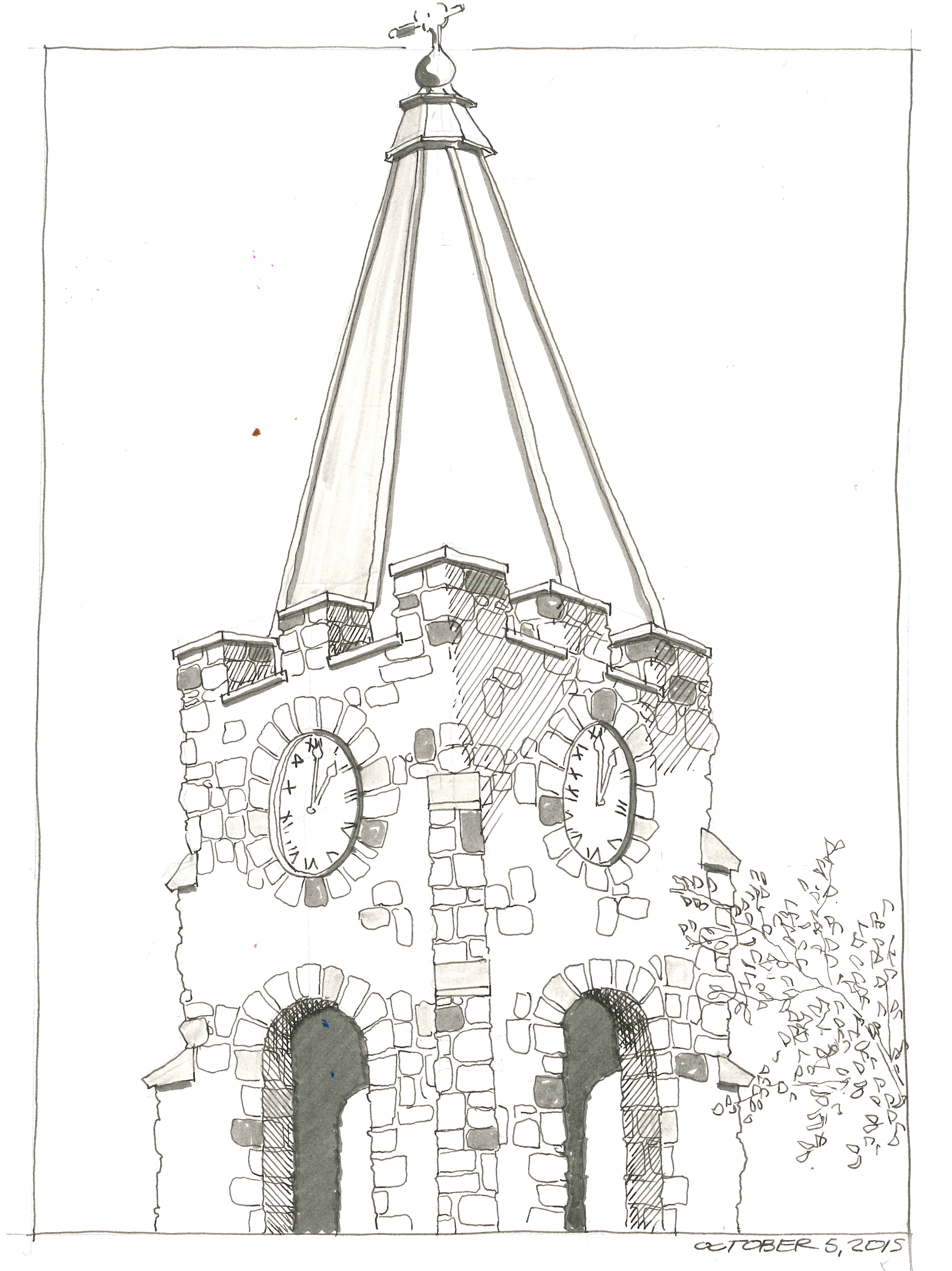 The Congregational Church of Manhasset, has a history that dates back to its organization in the fall of 1939. Groundbreaking ceremonies for this structure were held in May, 1948, and the cornerstone was laid on October 24. Dedication of the building followed on June 12 of 1949. I was drawn to this building by the interesting and modern Bell Tower. I sketched this from the coolness of my car in between meetings on a very hot day. Pilot Falcon fountain pen with Noodler’s Bulletproof black ink and Holbein watercolors in a Stillman and Birn Beta sketchbook.